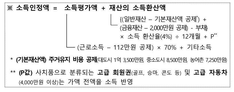 소득인정액 계산 공식